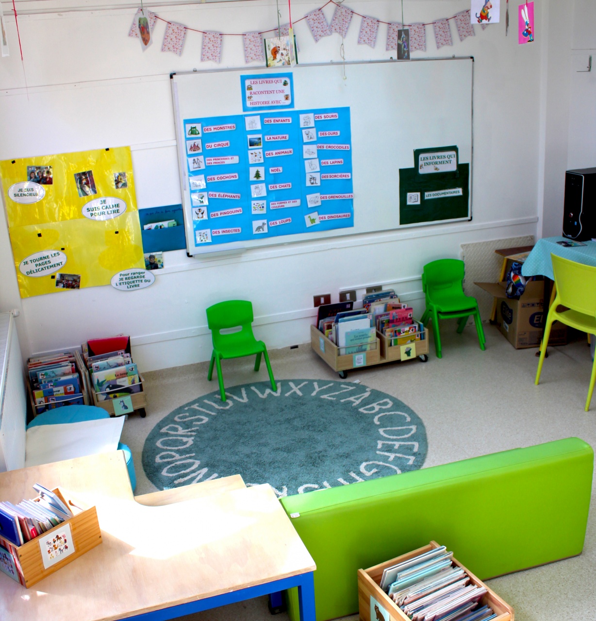 Con el fin de fomentar estos momentos privilegiados, las familias están invitadas a venir a disfrutar de la BCD (Bibliothèque Centre Documentaire) y de la Marmothèque (biblioteca para educación inicial).