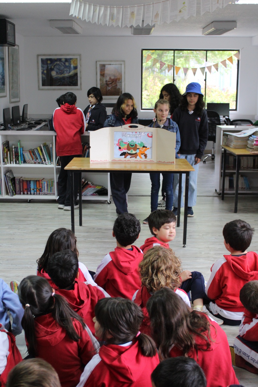 Casi cerrando el año escolar, los alumnos de 6ème prepararon una sesión original de Kamishibai (género narrativo japonés, especie de teatro ambulante en el que los artistas cuentan historias haciendo desfilar ilustraciones ante el público) para sus pequeños camaradas de CP.